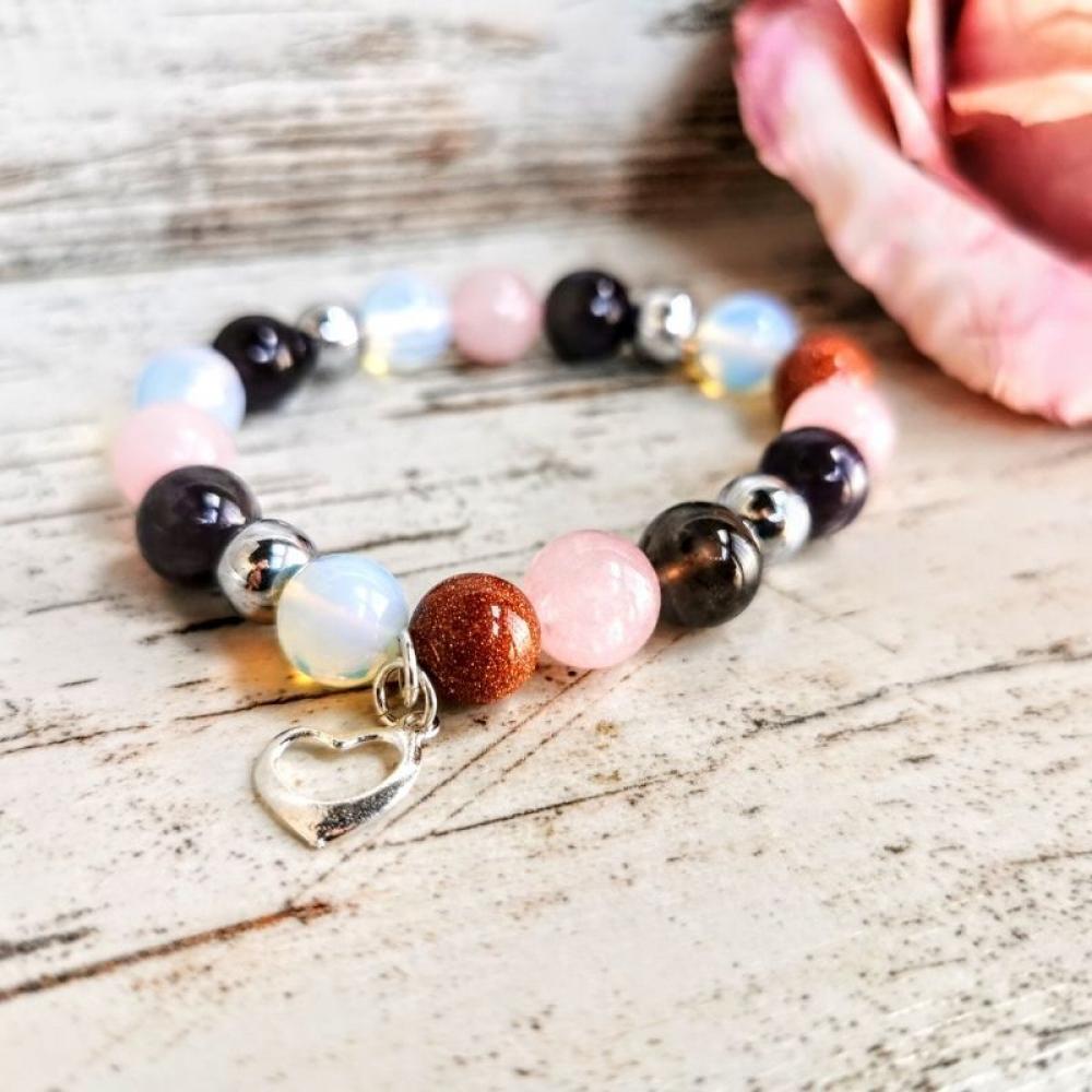 Това е един не само красив камък, но и много допълващ. Той допълва розовия кварц и заедно с него правят гривната направо любовна. Точно това искаме, нали?